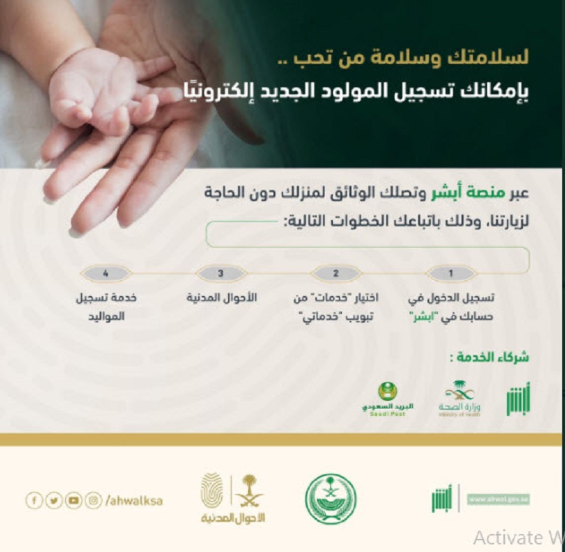 - وبذلك اكتملت عملية تسجيل المولود عبر منصة أبشر.