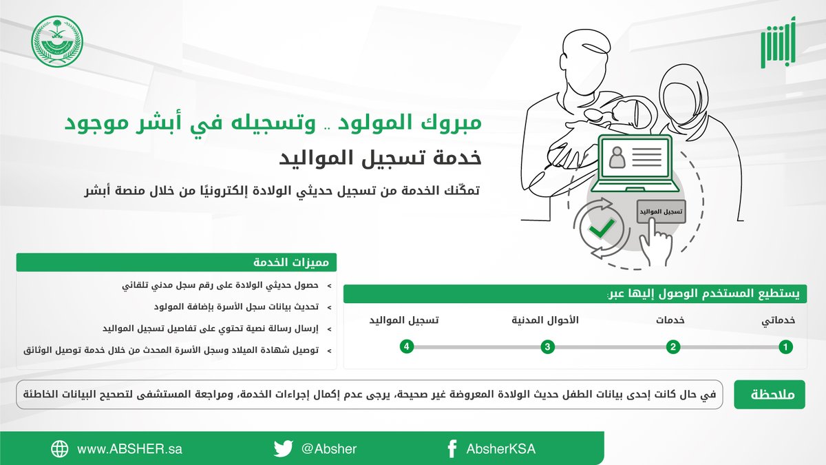 خطوات التسجيل في أبشر لإضافة مواليد 1443